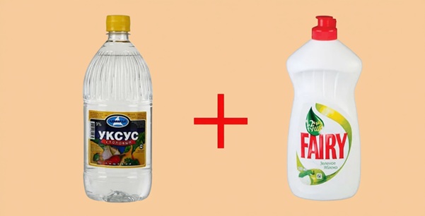 Экономичный метод подходит для обработки уплотнительной резинки и других поверхностей. Уксус (6–9%) смешивается с средством для мытья посуды в равных пропорциях. В резиновых перчатках смесь наносится губкой на резиновую манжету, с отгибанием складок для доступа к труднодоступным местам. При стойких загрязнениях используется старая зубная щетка. Обработанные поверхности промываются чистой влажной тряпкой и вытираются насухо. Метод эффективен для локальной очистки и устранения запаха плесени.