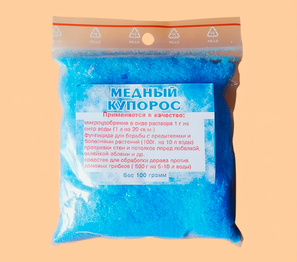 Медный купорос (сульфат меди) — токсичное, но эффективное средство против грибка в стиральной машине. Раствор готовится из 50 г медного купороса и 5 л воды. В резиновых перчатках и респираторе раствор наносится губкой или щеткой на пораженные участки. Остатки заливаются в барабан, запускается цикл стирки на максимальной температуре, затем включается дополнительное полоскание для удаления остатков. Барабан и уплотнительная резинка высушиваются. Использованные инструменты утилизируются из-за токсичности вещества.