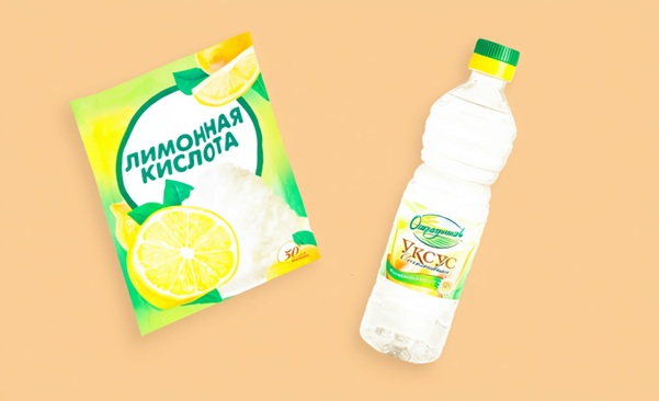 Лимонная кислота и уксус создают кислую среду, уничтожающую грибок. В отсек для порошка наливается 200 мл уксуса (6–9%), запускается полный цикл стирки на максимальной температуре. Затем 200 г лимонной кислоты добавляется в отсек для кондиционера, включается режим полоскания, после чего проводится повторное полоскание без средств. Все поверхности протираются насухо. Метод также удаляет накипь в стиральной машине.