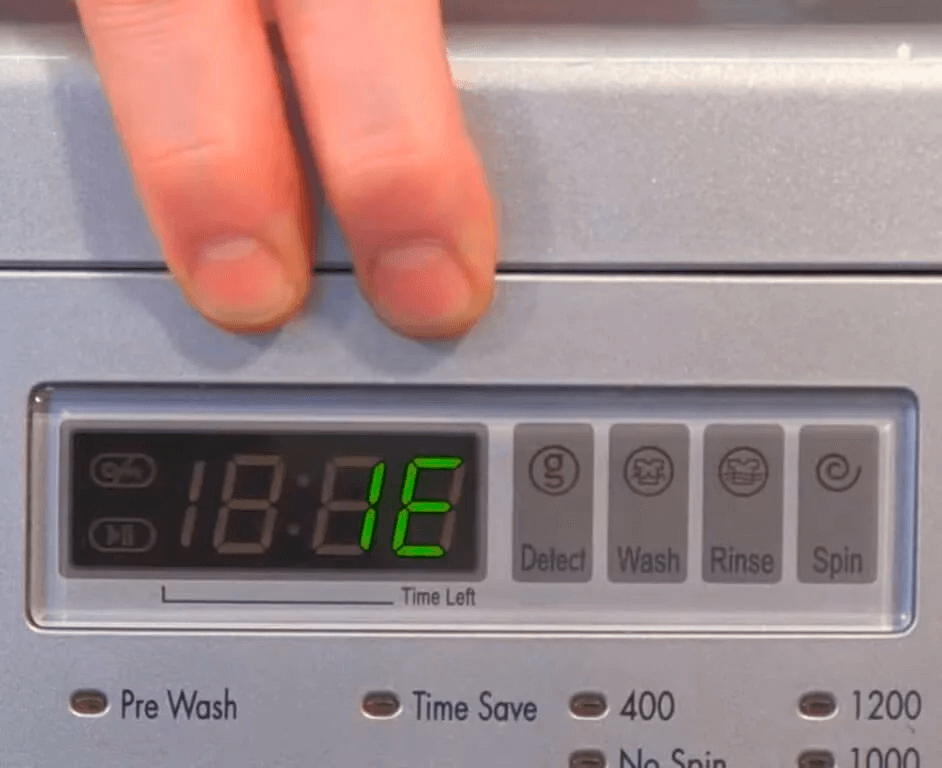 Сравните комбинацию мигающих индикаторов с инструкцией. Например, на Samsung ошибка E1 отображается горением всех режимов стирки и нижнего индикатора температуры.