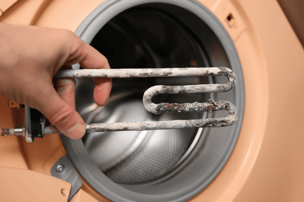 - Поломка ТЭНа. Нагревательный элемент (ТЭН) отвечает за нагрев воды. Накипь или перегорание спирали приводят к отсутствию нагрева. Проверьте стекло люка через 15 минут после старта программы: если оно холодное, ТЭН неисправен. Очистите ТЭН раствором лимонной кислоты (100 г на 2 л воды, запустите цикл при 60°C). Если нагрев не восстановился, замените ТЭН. Подробности в статье как очистить стиральную машину от накипи.