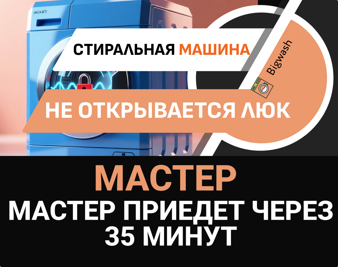 Мастер BigWash приедет в течение 40 минут, аккуратно откроет люк без повреждений и восстановит механизм с гарантией.